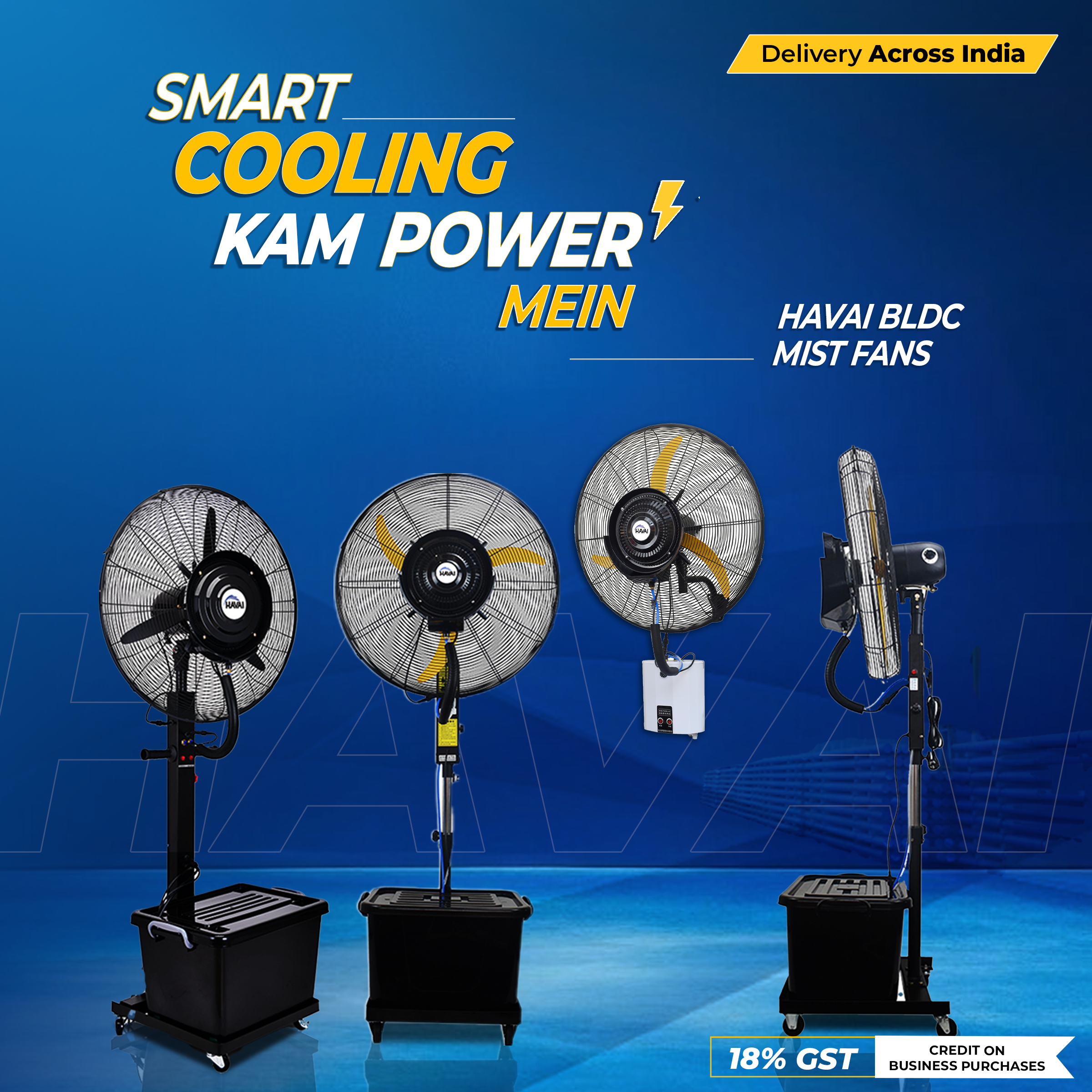 HAVAI BLDC Mist Fan 26 inch with Adjustable Rod, 41 Litre Tank, Assembly Included